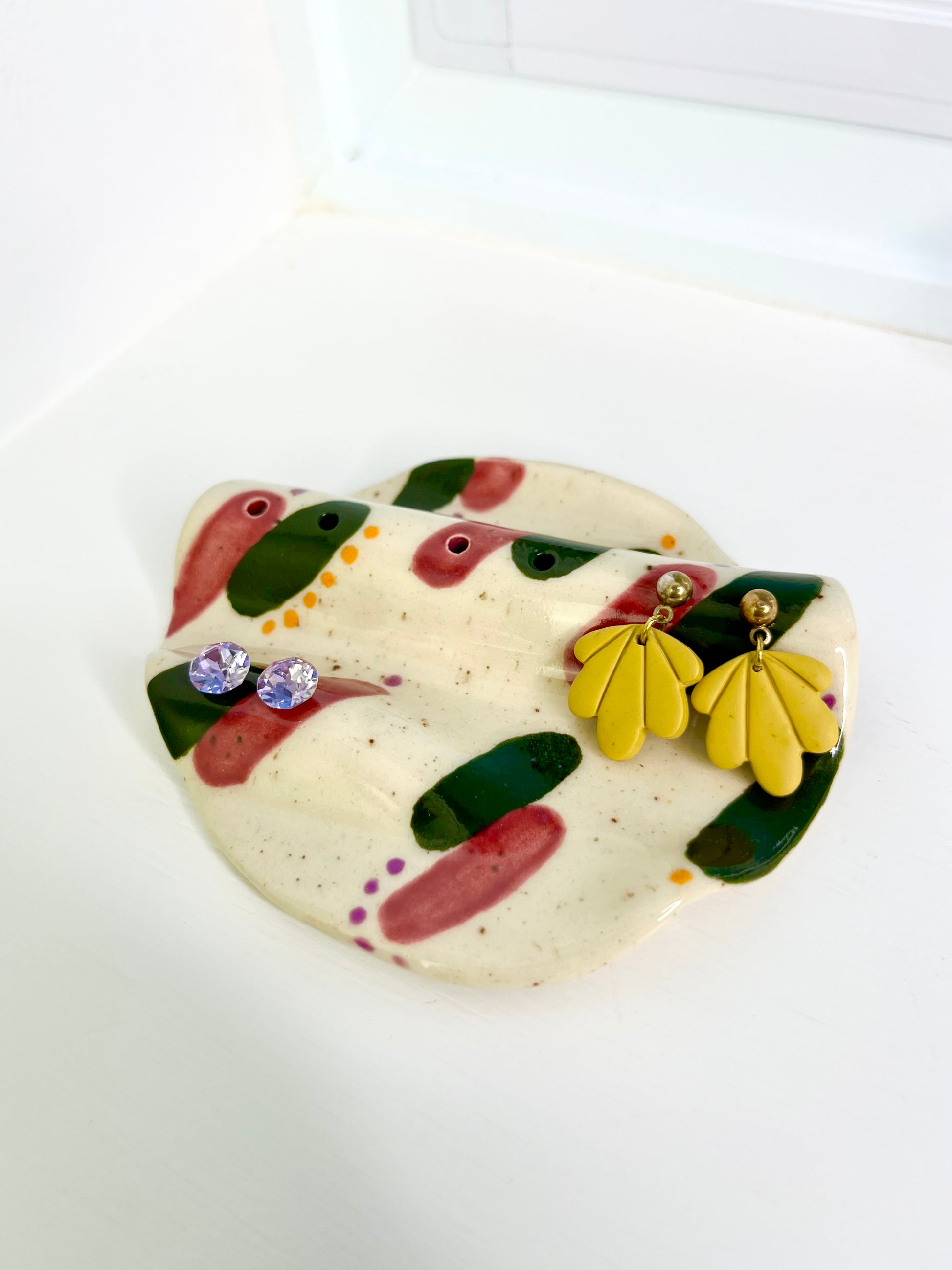 Green and Pink Brush Stroke Wavy Jewelry Tray